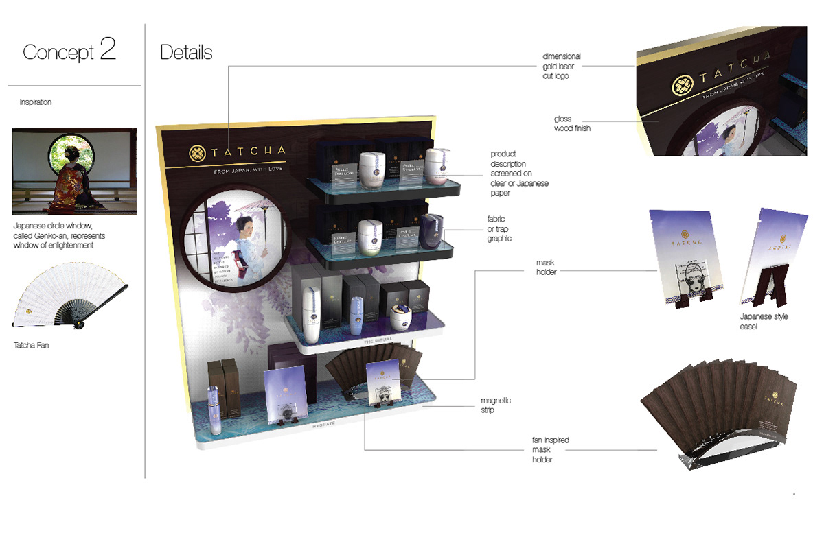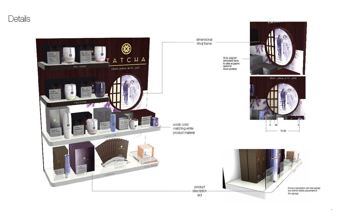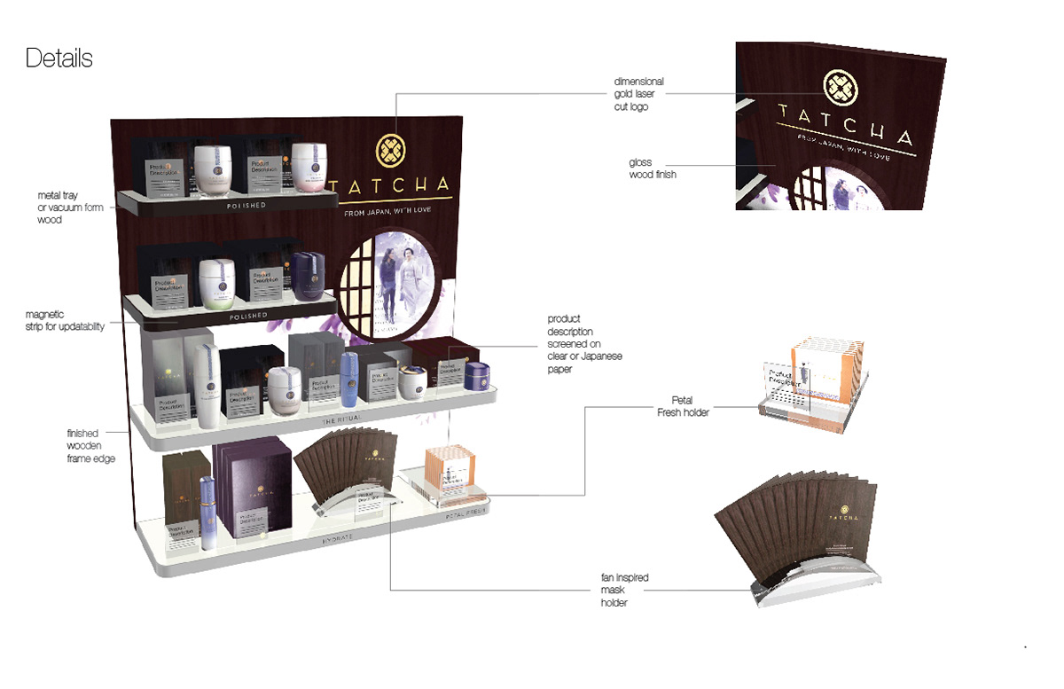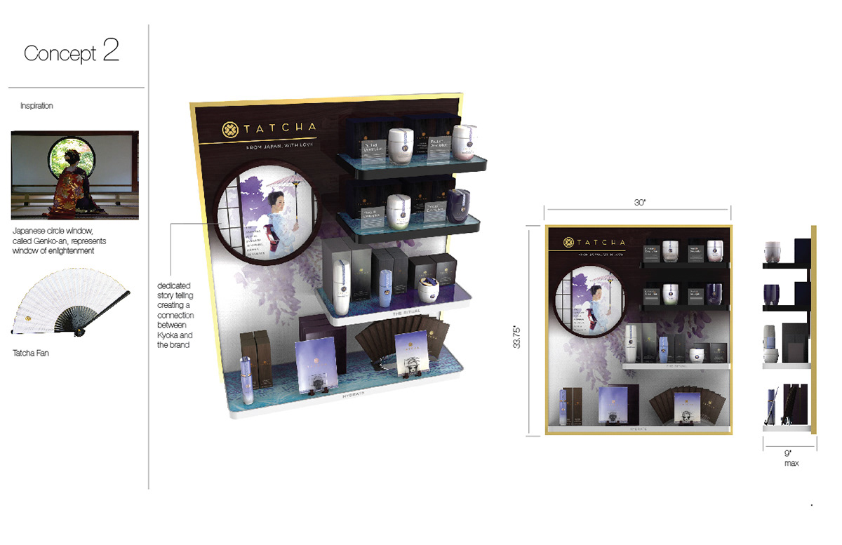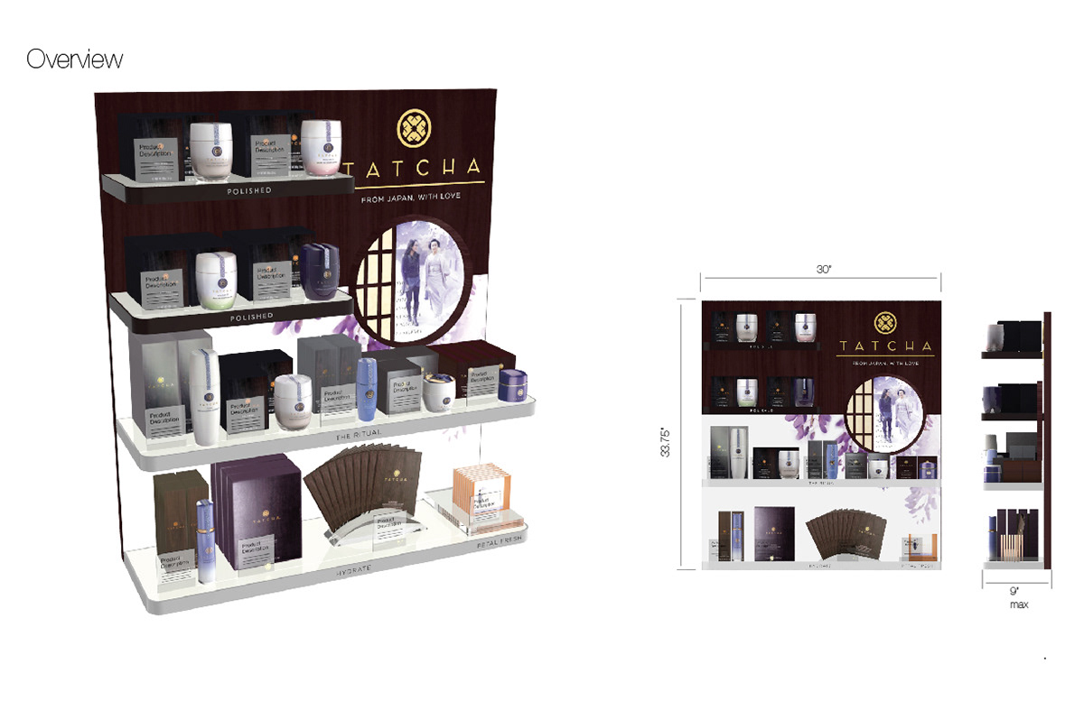 Tatcha is a Japanese inspired brand that was launching in Fall 2015 at Sephora. The client sought for expertise in designing an endcap display that focuses the visual narrative on both the packaging and the story of the geisha-inspired products.